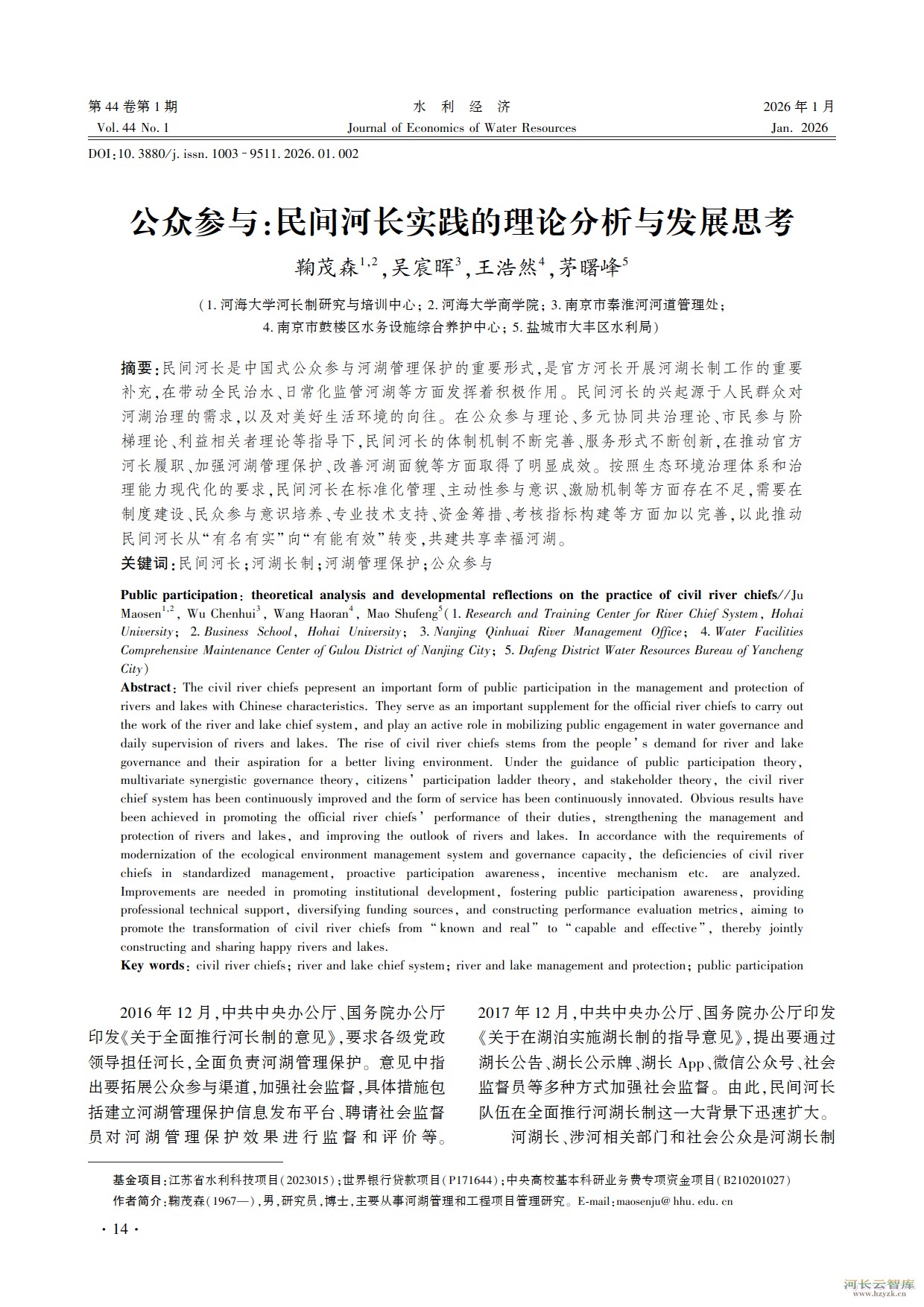 鞠茂森研究团队文章:民间河长实践的理论分析和发展思考